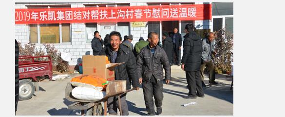 1月25日,新春佳節(jié)到來之際,中國樂凱集團扶貧辦組織集團公司定點扶貧淶源縣成員單位到淶源縣開展春節(jié)前慰問活動,給上溝村、五節(jié)崖村村民送上生活用品和節(jié)日的祝福。集團公司、樂凱集團、五院、航天投控相關領導參加了慰問活動。